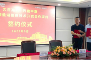 2022年9月15日,久吾高科与西藏中鑫投资有限公司(以下简称“西藏中鑫”)举行“班嘎错盐湖吸附耦合膜法原卤提…