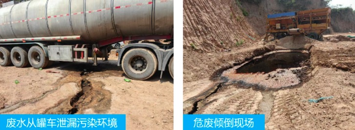 2023年9月30日,襄阳市生态环境局枣阳分局(下称枣阳分局)接举报有疑似非法倾倒危险废物的线索,枣阳分局执法人员立即联合市公安局组成专案组赴现场调查。调查发现,枣阳市一林场灌溉渠内有大量褐色废液;周边土壤有明显废液入渗痕迹,流经之处植物枯死;废液渗入鱼塘造成大量鱼类死亡,污染范围从倾倒点到下游堵截点长度达1200米、宽度约3米。