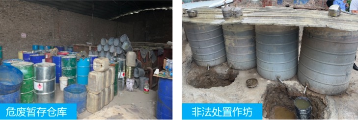 2023年8月,专案组运用红外热成像排查可疑高温加工点位后确定重庆市沙坪坝区存在非法收集、加工、处置废有机溶剂及废包装桶的窝点。9月12日,执法总队会同沙坪坝区生态环境局及公安机关赴现场开展调查,查处废有机溶剂加工小作坊2个,并当场将作坊负责人舒某春、周某荣控制,查封扣押废有机溶剂、废包装桶(经鉴定属于危险废物)等共计200余吨。